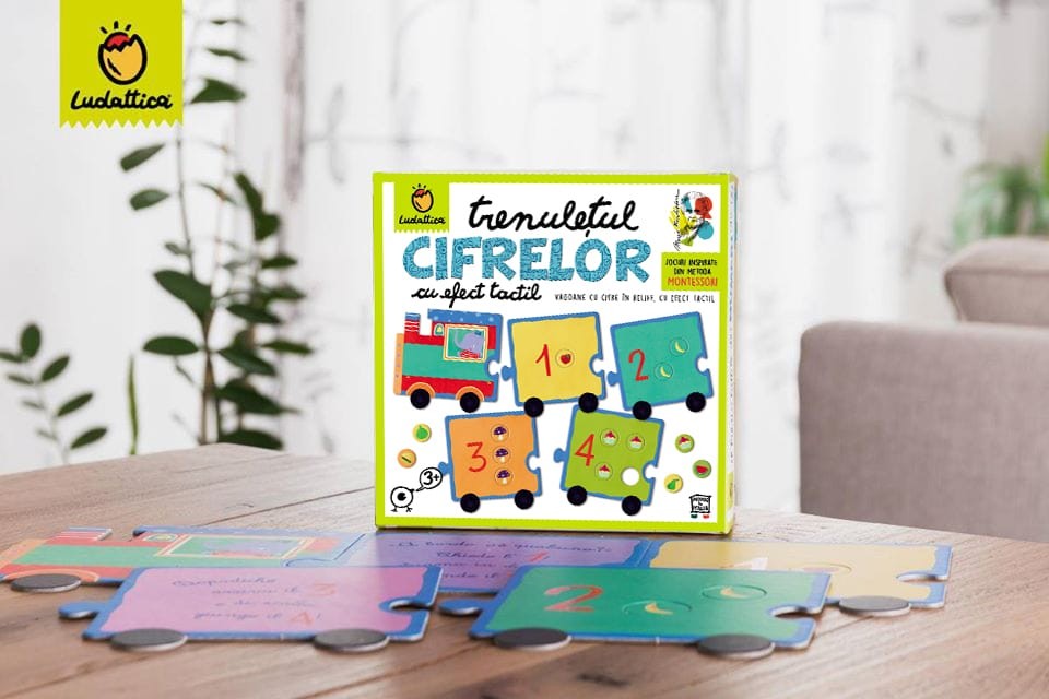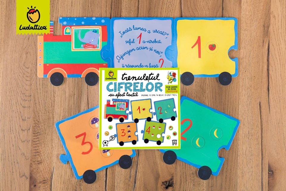 Joc Montessori Trenulețul Cifrelor Cu Efect Tactil, Ludattica, +3 ani