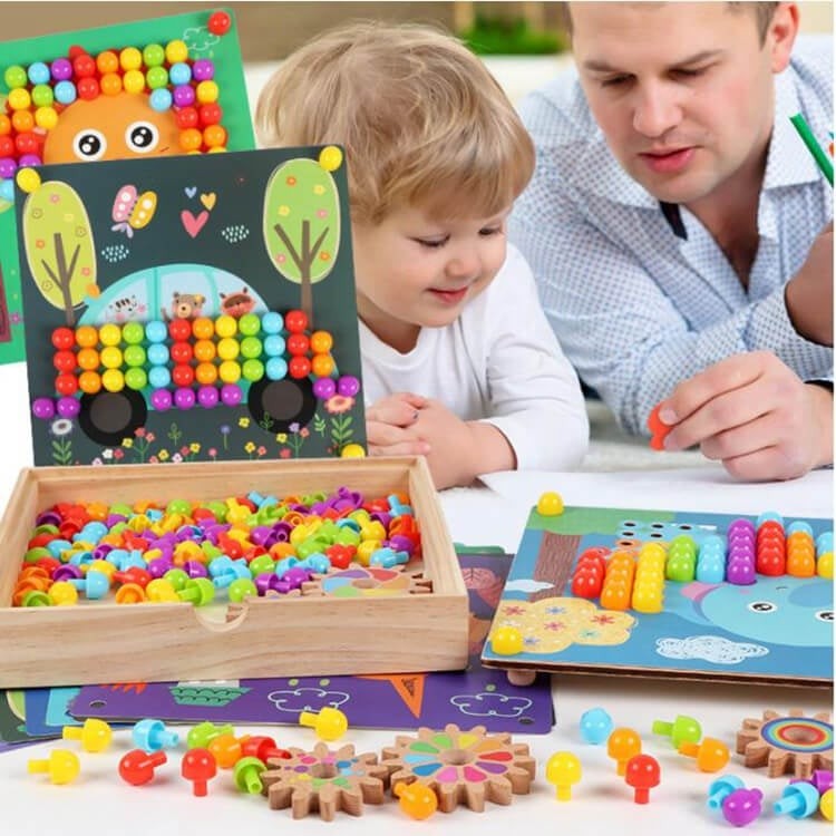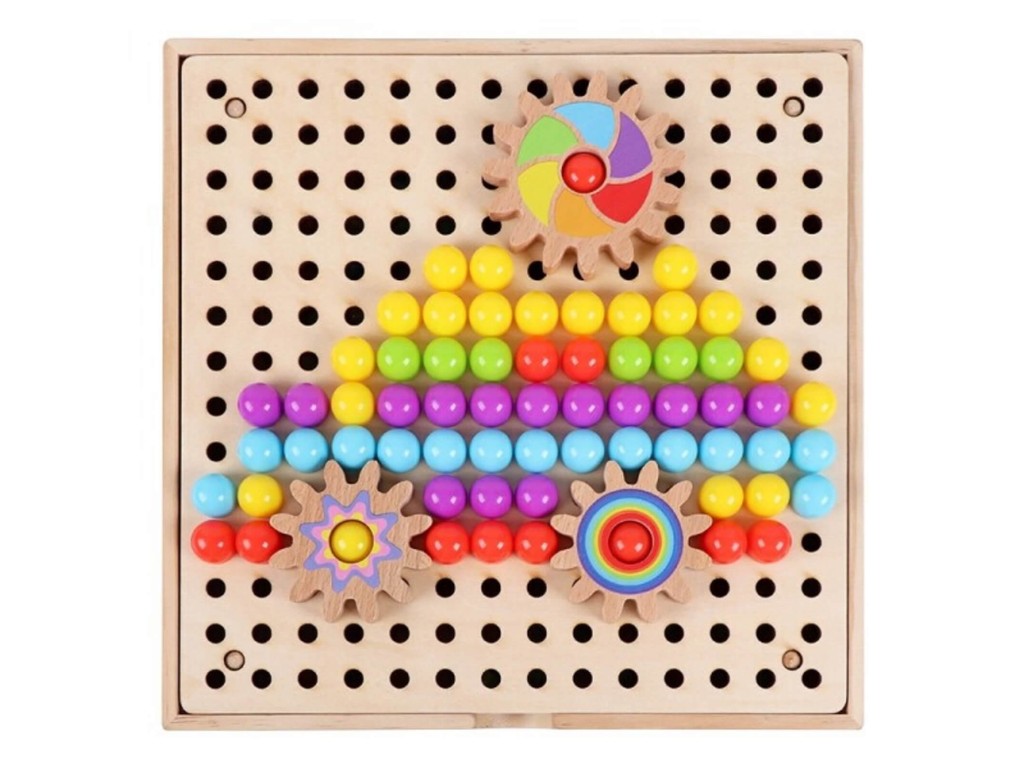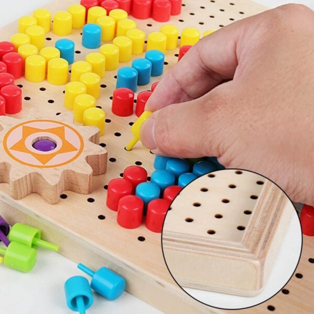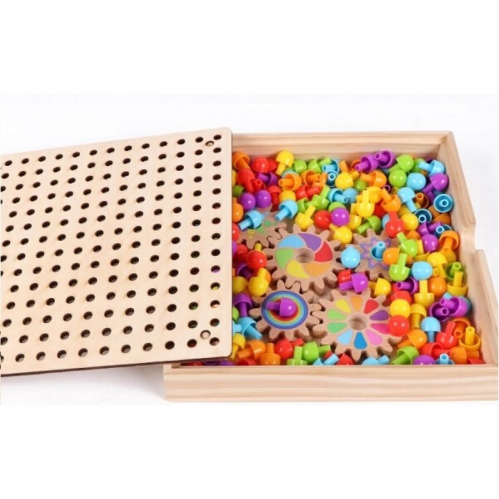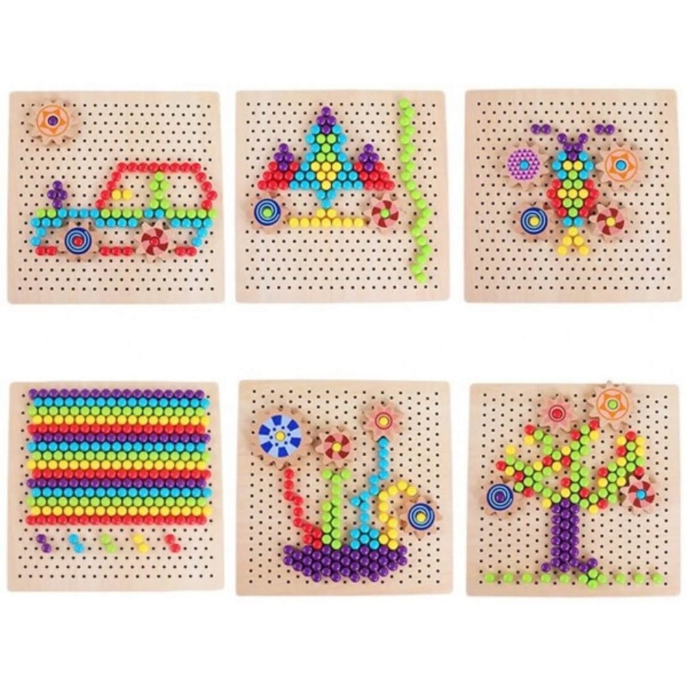Joc Mozaic, Fanta Color din lemn, Pixel cu pioneze și planșe, 197 piese