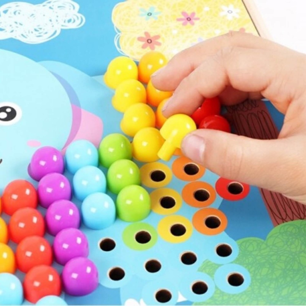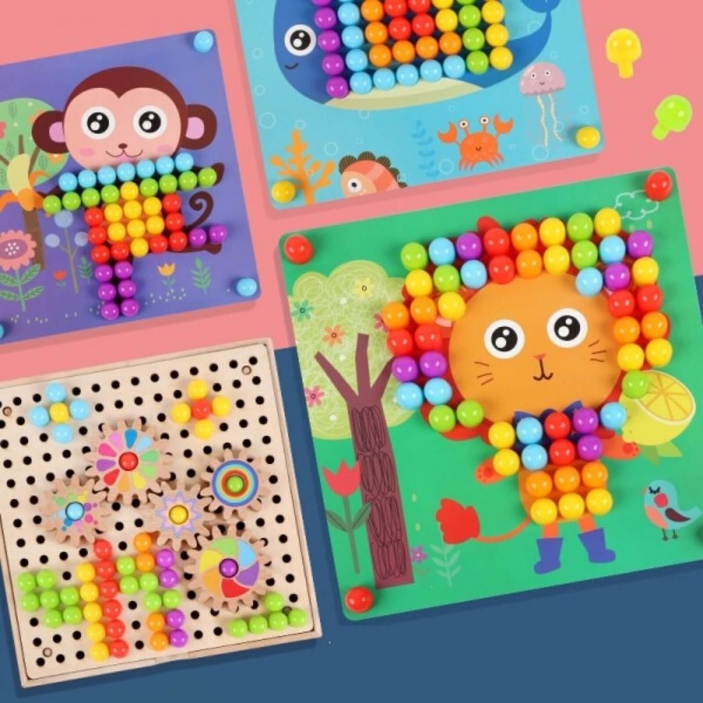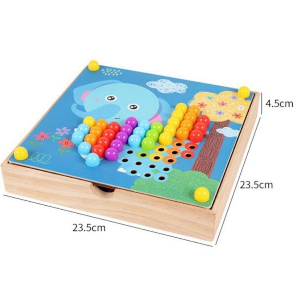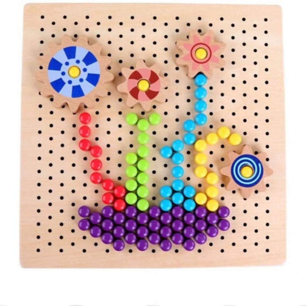 Joc Mozaic, Fanta Color din lemn, Pixel cu pioneze și planșe, 197 piese
