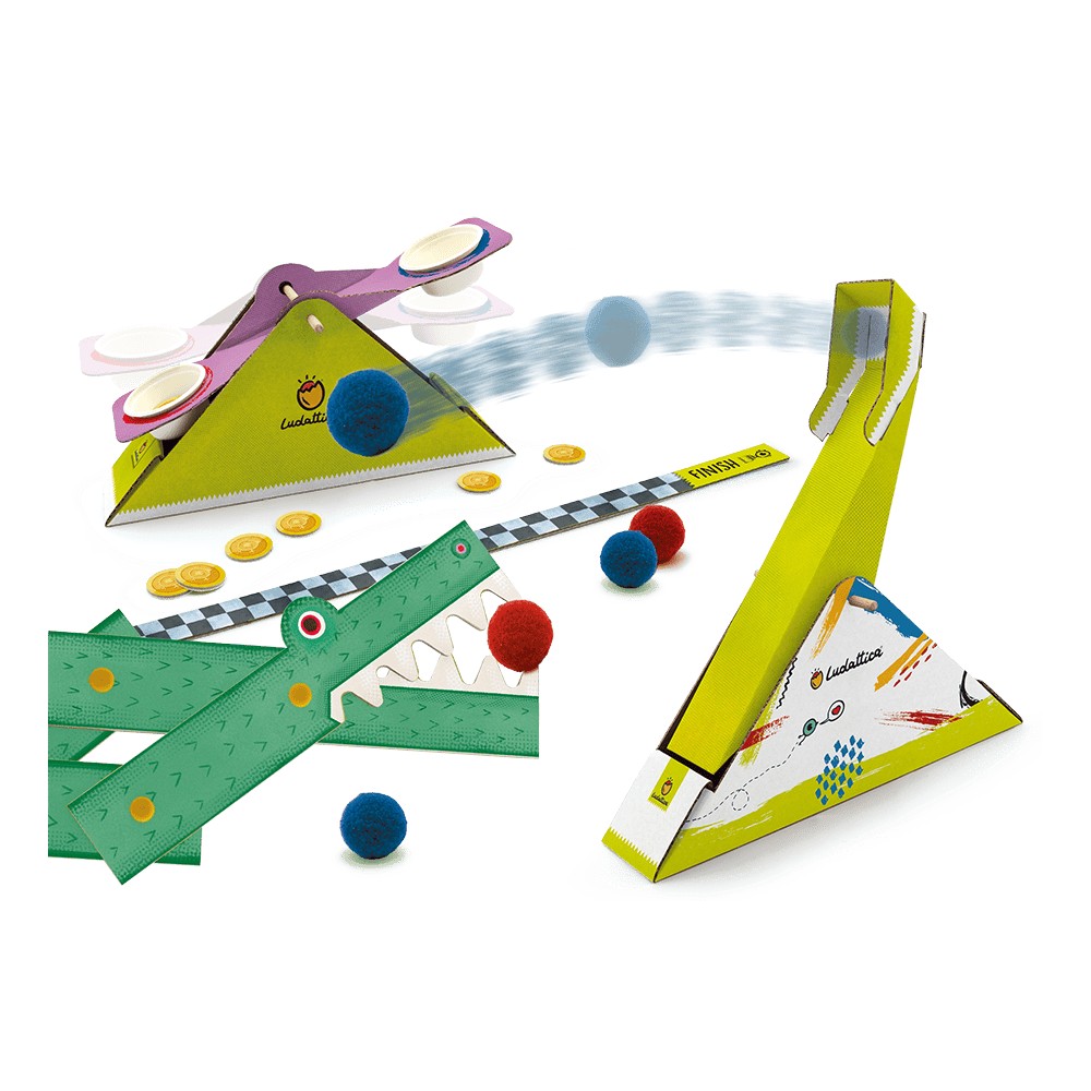 – Catapulta: Lansează pompoane colorate, oferind o modalitate amuzantă de a învăța despre forță și mișcare.