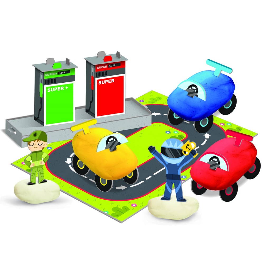 – Distrați-vă, jucându-vă cu setul pe care l-ați creat. Prin modelarea și combinarea diferitelor materiale, copiii se distrează, construindu-și decorul de joc: planșa, o multitudine de mașini mici și călăreți care pot fi transformați, cu ajutorul imaginației, în personaje cu care copiii să se joace Un set original conceput să stimuleze abilitățile motorii fine și imaginația celor mici! Modelând și combinând diferite materiale, precum plastilina și cartonul, copiii construiesc toate elementele jocului, pentru a le anima apoi stimulând imaginația și creativitatea.