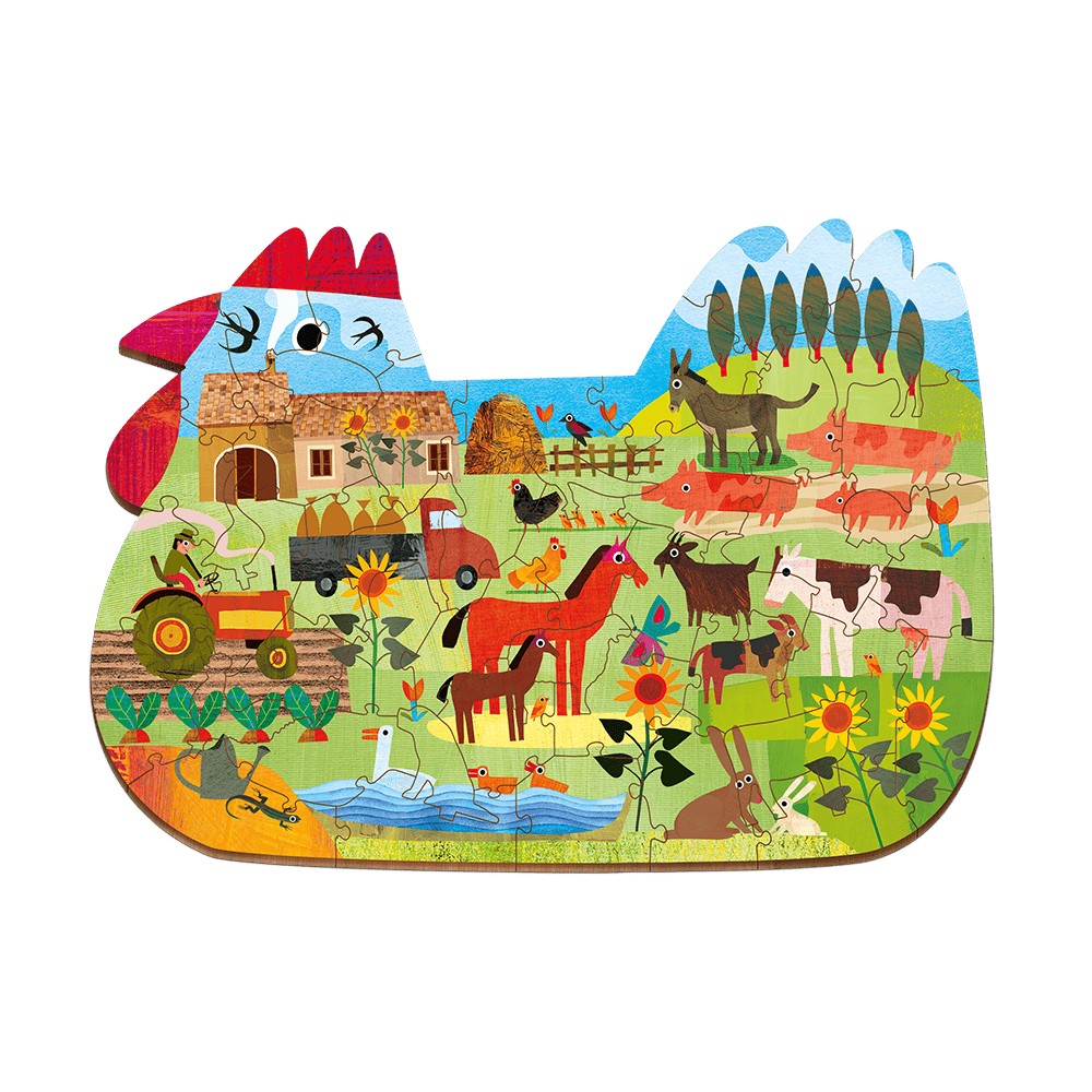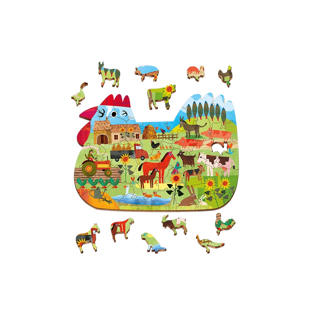 Un puzzle de lemn de mesteacăn, cu 48 de piese, care aduce la viață o fermă plină de culoare și detalii captivante. Dimensiunile de 25 x 35 cm fac din acest puzzle o alegere ideală pentru copiii de peste 5 ani.