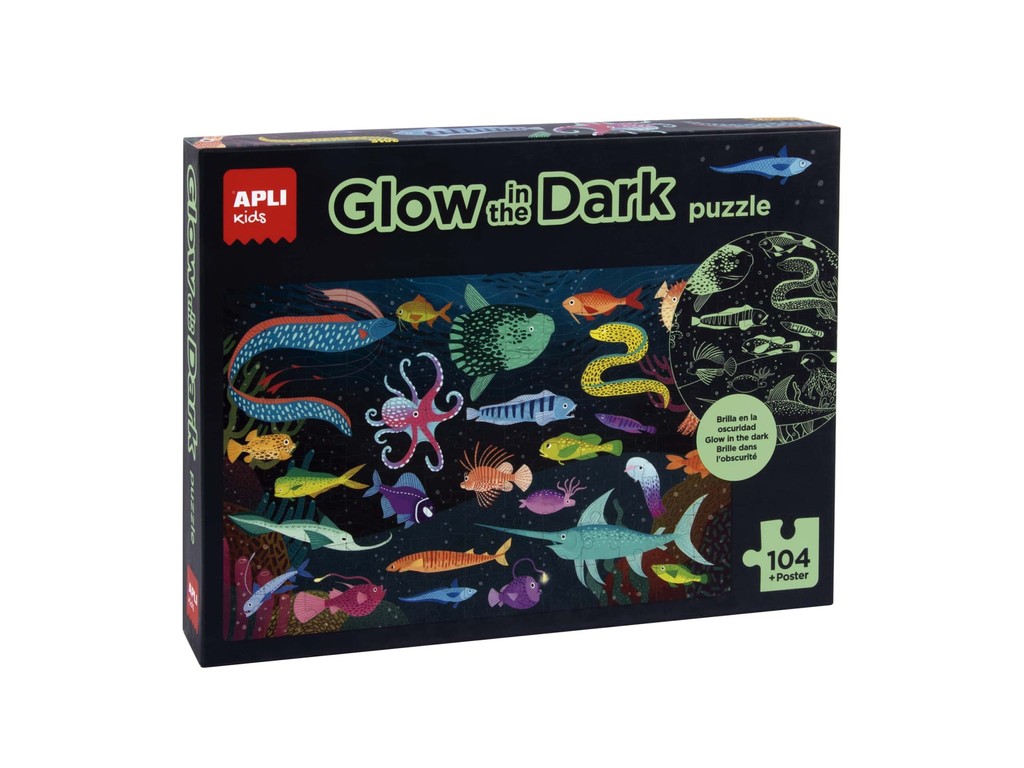 Conține un poster care prezintă dimensiunea reală a puzzle-ului pentru a facilita asamblarea. Odată ce puzzle-ul este asamblat, copiii pot stinge lumina pentru a vedea peștii strălucind în întuneric și pentru a descoperi diferențele existente.