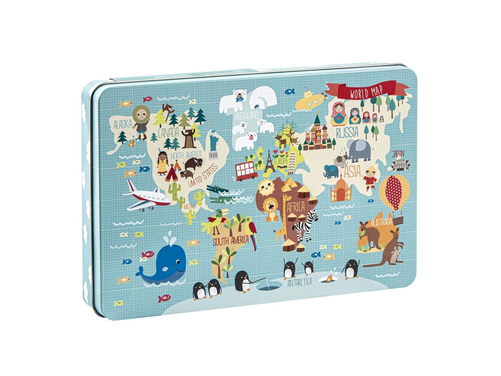 Puzzle, model de hartă a lumii, ilustrat exclusiv de Lily Lane. Include 24 de piese de 8 x 8 cm. Dimensiunea puzzle-ului: 48 x 32 cm.